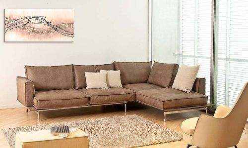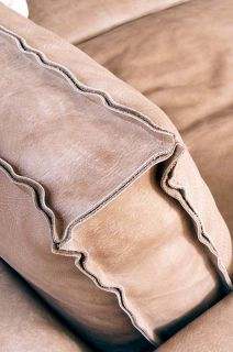 Divano angolare foderato in pelle, lavorata con effetto vintage. .