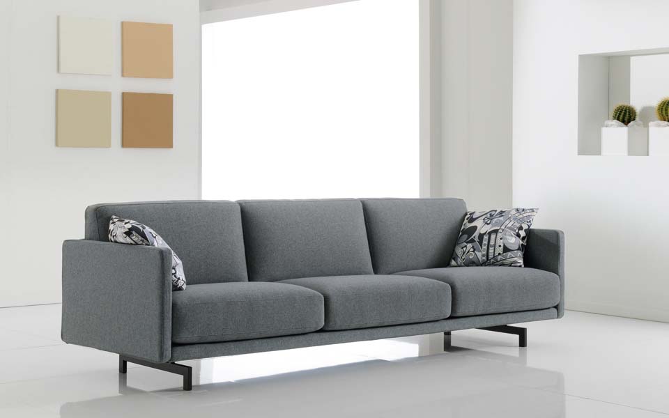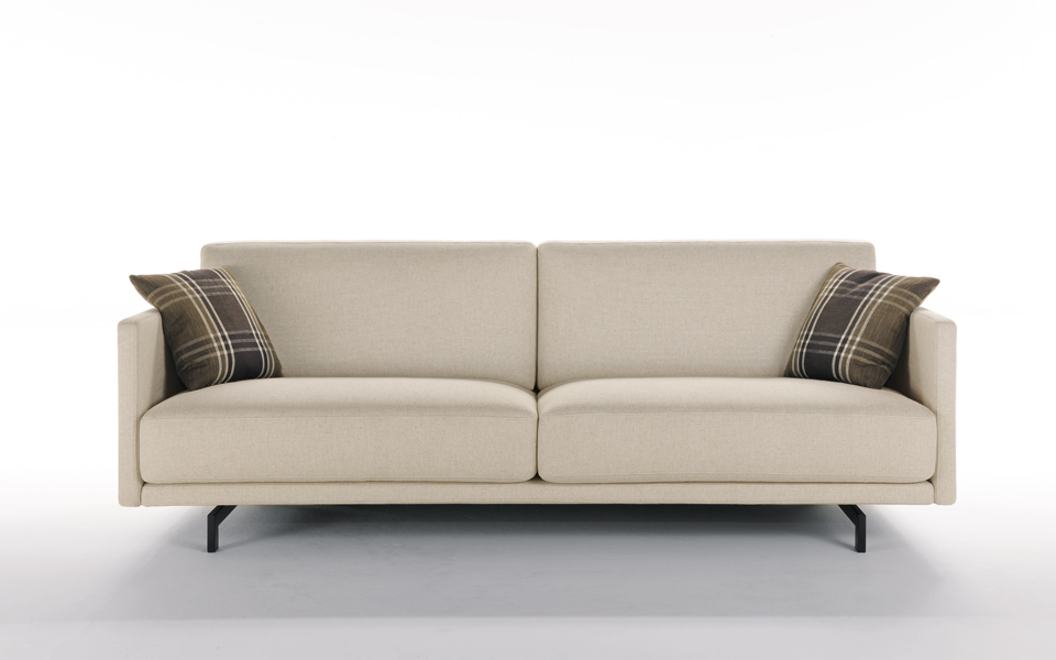 Disponibile sia in pelle, per un ambiente più elegante, sia in tessuto per contesti più informali. Il supporto è un’originale soluzione a vista che rappresenta non solo una precisa scelta estetica, che rialza il piano da terra lasciando un ampio spazio alla vista, ma anche un ottimo aiuto che permetterà di effettuare le pulizie degli ambienti senza dover spostare il divano.