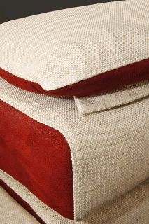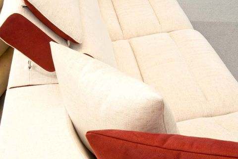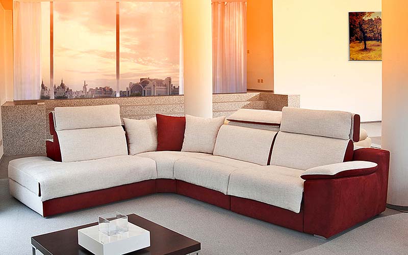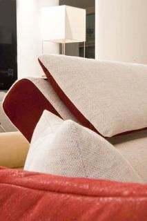 “Divano moderno angolare dal design raffinato, ideale per integrarsi armoniosamente in un salotto contemporaneo. La sua elegante livrea bicolore rosso/beige cattura l’attenzione, mentre le ampie sedute e gli schienali reclinabili offrono comfort personalizzabile per soddisfare le diverse esigenze di postura e relax. L’originale estetica del divano riflette l’abilità artigianale che lo rende un pezzo unico, un equilibrio perfetto tra tradizione e modernità. Dettagli curati, come i braccioli arricchiti da inserti in velluto sui toni del rosso, aggiungono vivacità al dinamismo visivo del divano, rendendolo un elemento distintivo negli ambienti in cui viene collocato. La penisola, con uno schienale pressoché per intero, offre sedute complete, suggerendo serate piacevoli in compagnia.