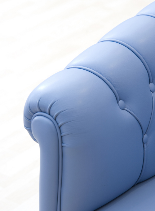 Bellini, la poltrona button (bottone), se hai occhio nei dettagli ti sarà facile dedurre il significato di ciò, e puoi notarlo dai suoi bottoni azzurri sparsi in modo accurato per quasi tutto il suo corpo, tranne sulla seduta, se ti stai chiedendo il perché di questa nostra scelta, possiamo dirti che lo abbiamo fatto per favorire il sentirti a tuo agio. In effetti sedersi in modo diretto con tutto il peso sui bottoni sarebbe stato molto più disagevole, nella parte in basso invece abbiamo messo delle gambe in legno per andare a stemperare un po’ l’azzurrino della poltrona ed equilibrare i colori.